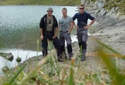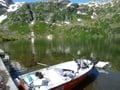 Nach einer gefühlten Ewigkeit kamen wir dann endlich am Bergsee an…...wow !!! Der erste Eindruck war überwältigend. Kein Mensch weit und breit, einfach Totenstille, ein wunderschöner See und eine prächtige Landschaft. So machten wir in aller Ruhe unser Gerät parat, und assen unseren verdienten Znüni ;-)