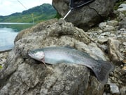 Am Pfingstmontag war es endlich soweit. Ursula und ich waren das erste Mal mit dem "Böötli" auf dem See. Am Morgen gabs noch die letzten Tropfen und dann klarte das Wetter zunehmend auf. Sehr beissfreudig waren die Salmoniden nicht. Am Schluss durften wir dann einen schönen Saibling und eine Refo mit nach Hause nehmen. Das Feeling auf dem See ist einzigartig und die Fischerei gestaltet sich völlig anders als vom Ufer.