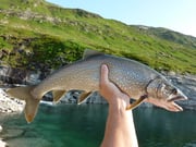 Der letzte Besuch an diesem wunderschönen Bergsee liegt schon einige Zeit zurück. Heute wollten wir es erneut versuchen. Wir wanderten mit grosser Vorfreude auf gute Fänge an den Bergsee. Marco, ein guter Fischerfreund, begleitete uns ebenfalls. Auf über 2000 m.ü.M angekommen warfen wir sogleich unsere Köder aus. Schnell zeigte sich, dass wir uns einen schwierigen Fangtag ausgesucht hatten. Trotz vieler Platzwechsel und Experimentieren konnten wir unseren Zielfisch, den Namaycush nicht aufstöbern.Auch die sonst so aktiven Saiblinge waren spurlos verschwunden und nicht auffindbar. Schlussendlich fanden einige schöne Refos gefallen an unseren Ködern. Die Zeit verging wie im Flug und wir hatten noch die Rückwanderung ins Tal vor uns.Es war ein erlebnisreicher Tag, leider ohne Namay's.