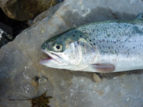 Abständen, immer wieder die eine oder andere Forelle fangen.