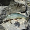 Meine Frau Ursula und ich wanderten heute an den Bergsee. Gut versorgt mit Picknick und natürlich dem Regenschutz richteten wir ein "Basislager" direkt am Ufer ein. Ursula legte gleich mit der Spinnrute los und schon nach kurzer Zeit hatte Sie den schönsten Fisch des Tages an der Angel. Ein schön gezeichneter Namaycush......Der Stolz lag ganz auf Ihrer Seite, hatte ich doch noch nicht mal einen Zupfer zu verbuchen. Gratuliere Ursula....so nehme ich Dich jederzeit wieder mit.