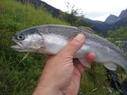 Viele Würfe waren nötig, um nur mal den ersten Fischkontakt zu haben. Am Schluss durfte ich zwei wunderschöne Refo's nach Hause nehmen. Ein wunderbarer Tag in den Bergen.