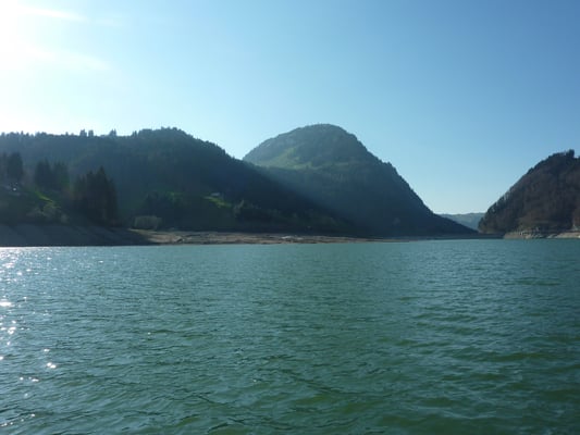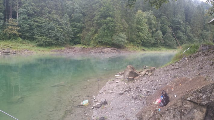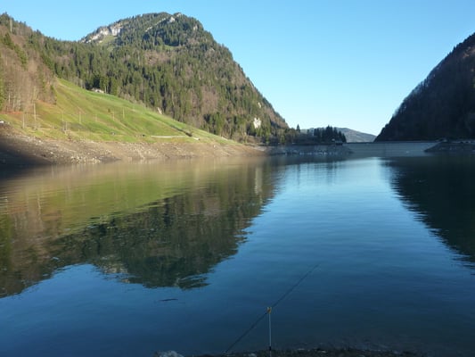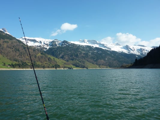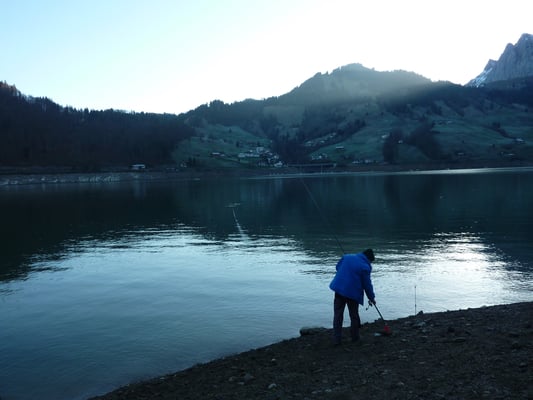 Da ich (Kevin) meinem Götti, der in Sachseln wohnt, wieder mal einen Besuch abstatten wollte, war dies eine gute Gelegenheit diesen Ausflug mit "Fischen am Lungerersee" zu verbinden. Vormittags um 11.00 Uhr erreichte ich mein Ziel. Die Fischerei bestätigte sich als sehr schwierig. Die altbekannte Theorie, dass rund um Vollmond die Fische nicht beissen, bewahrheitete sich brutal. Auch 10-maliges Platzwechseln brachte nicht den gewünschten Erfolg. Auf Kunstköder lief leider gar nichts. So langsam dachte ich wirklich schon ans Aufgeben, doch ein letzter Platzwechsel sollte noch einen Fisch bringen. Und tatsächlich konnte ich endlich, nach Stunden, eine schöne 41er Refo mit der Grundmontage überlisten. Trotz den sehr schwierigen Bedingungen war es ein toller Tag,mit herrlichem Wetter. Ich packte meine Sachen zusammen und fuhr erleichtert zu meinem Götti nach Sachseln. Ein feines Nachtessen erwartete mich dort........