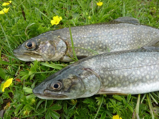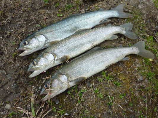 Der Bergsee war ausgesucht und nach einer langen Fahrt und einer angenehmen Wanderung erreichten wir den hochgelegenen, tiefblauen See. Schnell waren unsere Köder gesetzt. Es ging gleich Schlag auf Schlag und viele Namay's und schön gefärbte Bach- und See- Saiblinge schnappten sich die Köder. Viele durften allerdings weiter schwimmen, weil ihr Mass nicht unseren Vorstellungen entsprach. Ein paar schöne Exemplare kamen am Abend mit uns nach Hause...