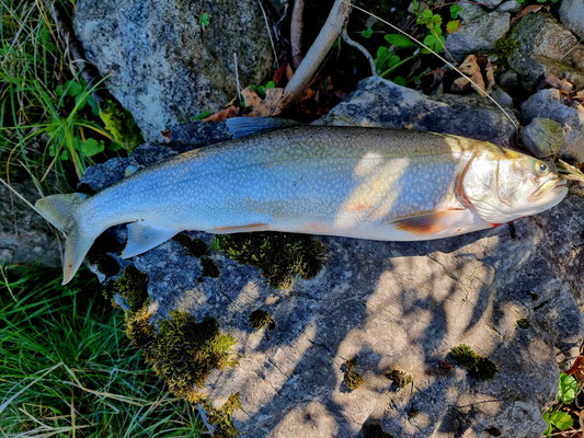 Viele Forellen und siehe da: Zum Schluss der Saison ein schöner 60-iger Kanadier. Schade geht die Saison am Wägitalersee schon Mitte Oktober zu Ende.